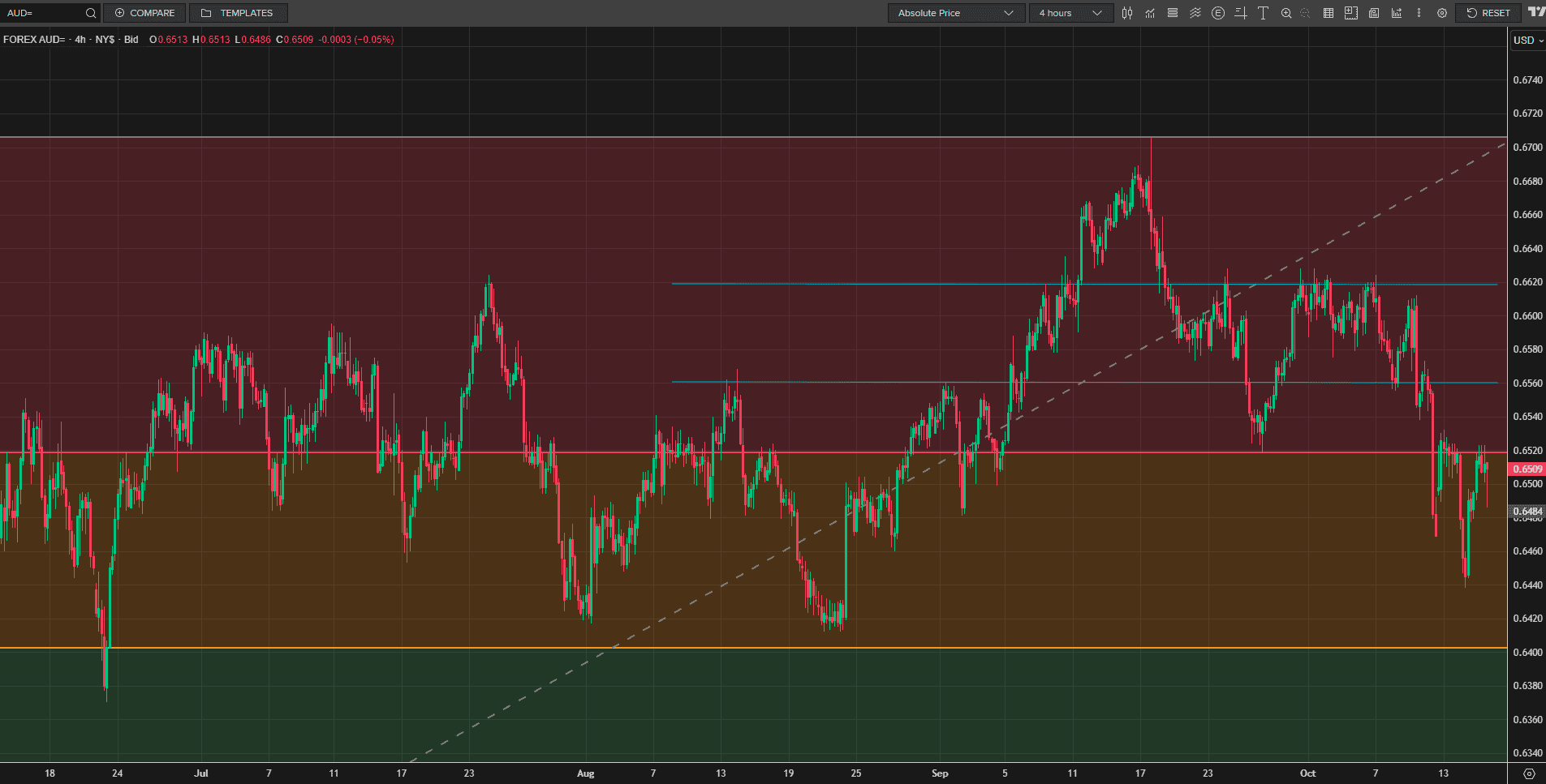 drugi wykres AUDUSD; interwał H4; źródło: Reuters Eikon dzięki uprzejmości Traderteam.pl